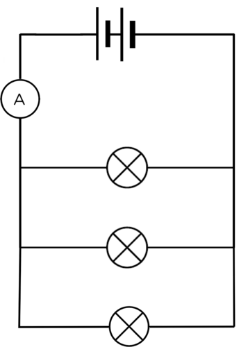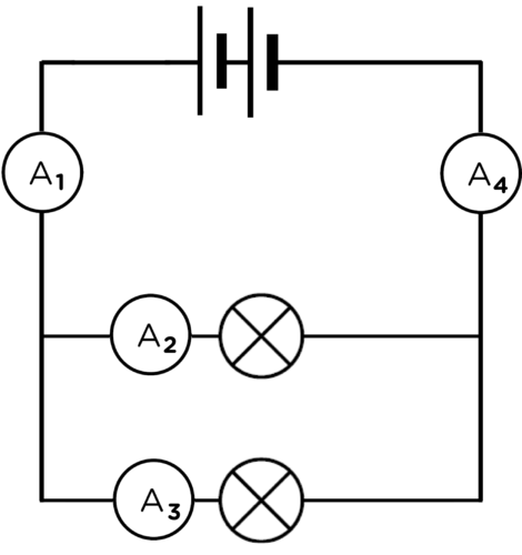 If the bulbs are the same and A1 reads 6A - what would the readings on the other 3 ammeters be?
