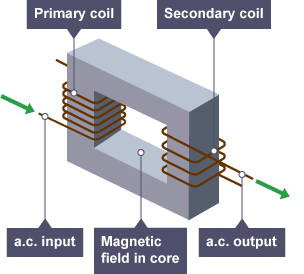 3) This ‘moving’ magnetic field causes a current to be induced in the secondary coil.
