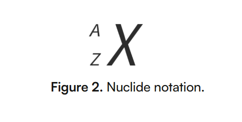 A notation using symbols for elements along with atomic number and nucleon number to desribe the composition of an element’s nucleus.