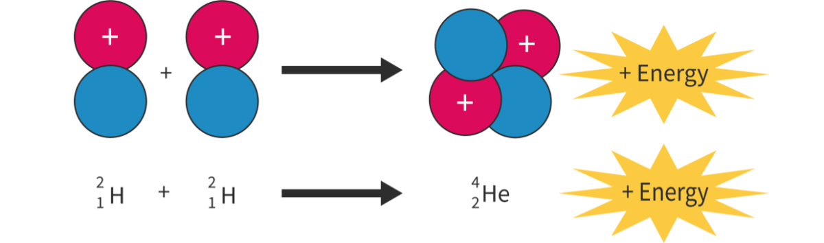 The joining of nuclei. The process by which lighter nuclei collide with high energy and join to form a larger nucleus. This leads to an energy release.