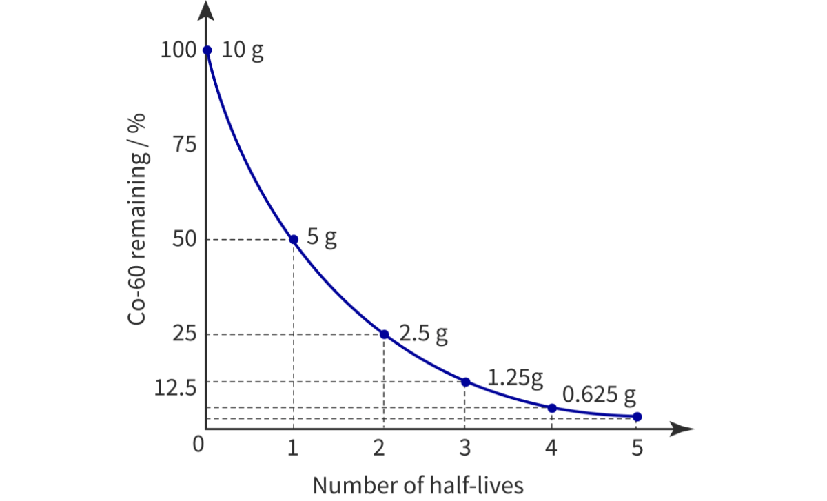 The x-axis is always time, while the y-axis may be radioactive activity, mass or radioactive isotopes, number of radioactive nuclei, percentage of radioactive nuclei remaining, etc.
