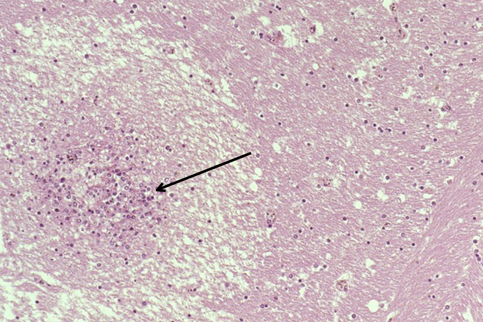 Durck granuloma: Microglial cells form small perivascular granulomas