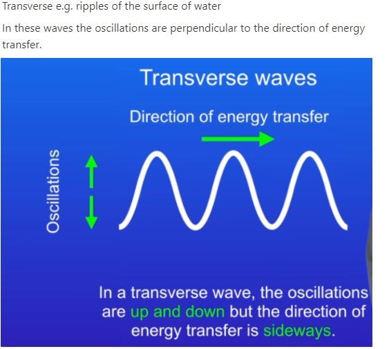 In tranverse waves oscillations are perpendicular to the transfer of energy.