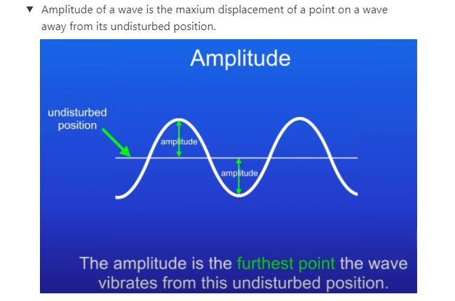 Amplitude is the maximum displacement of a point on a wave away from its undisturbed position.