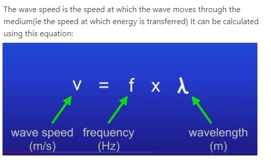 The wave speed is the speed at which the energy is transferred (or the wave moves) through the medium.
