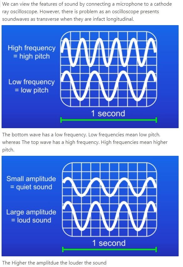You can view the features by connecting a microphone to cathode ray oscilloscope but it represents sound as transverse when it is longitudinal