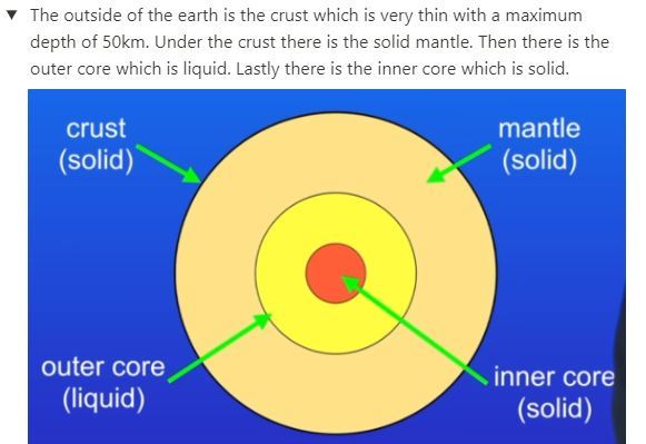 Sometimes faint p-waves are detected in the shadow zone which show that the Earth contains a solid core.