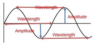 The wavelength of a wave is the distance from a point on one wave to the equivalent point on the adjacent wave.