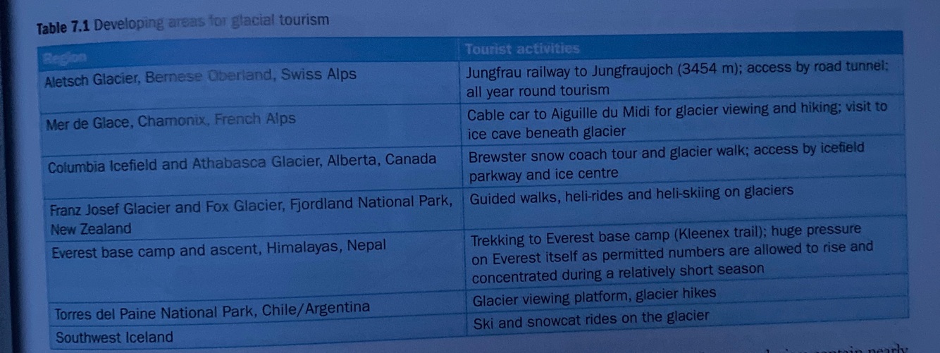 1 Skiers will be forced to high altitude resorts as lower resorts lose snow cover. This may increase the environmental pressures on a smaller number of higher resorts.