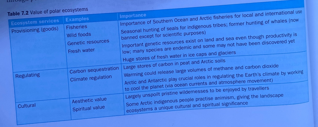 Environmentalists and ecologists would point to wilderness areas, such as the polar environments, being of inherent value for scientific reasons. They argue that areas of a truly pristine nature are very useful for research for a number of reasons: