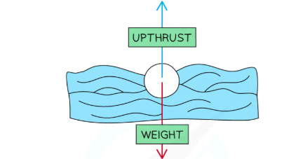 Upthrust – the force of a fluid (such as water) pushing an object upwards (making it float)