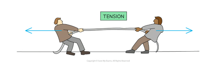 Tension – force transmitted through a cable or a string when pulled on by forces acting on its opposite ends