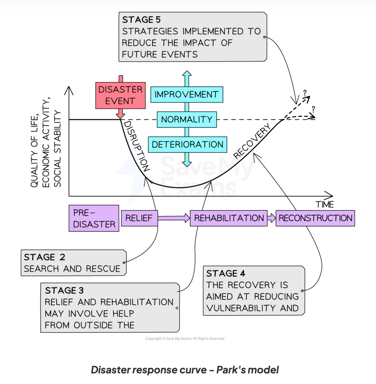 The Park hazard-response curve is a model that shows how a country or region might respond after a hazard event.