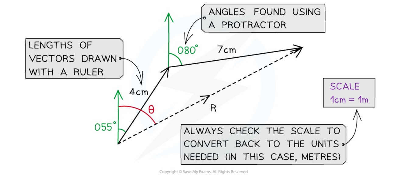 Draw a right-angled triangle to scale, in which each side represents a force. Try to choose a simple scale, for example 1 cm = 1 N.