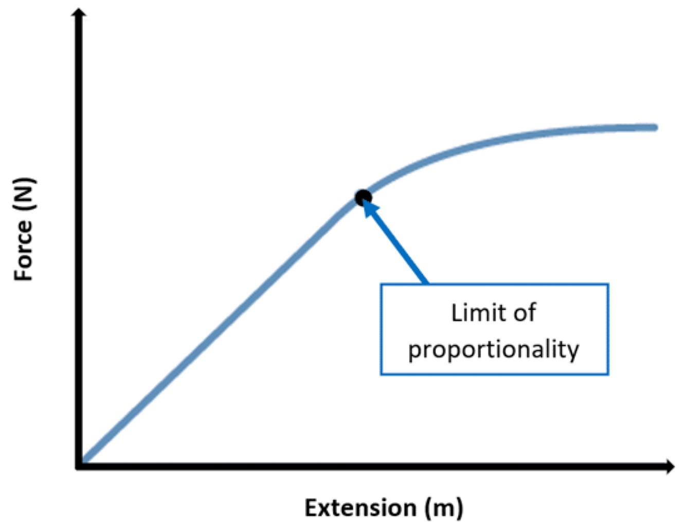 extension is directly proportional to force, as long as limit of proportionality is not exceeded