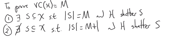 VC dimension of a hypothesis space H is the maximum number of points such that there exists at least one arrangement of these points and a hypothesis h ∈ H that is consistent with any labeling of this arrangement of points
