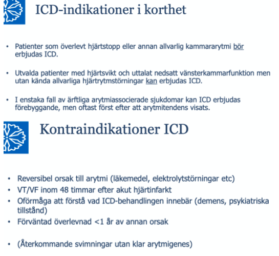 Indikationer och kontraindikationer för ICD? (4p)