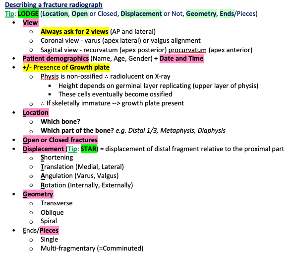 Tip: Pain + CARDS (Crepitus, Adjacent structural injury, Redness, Deformity, Swelling)