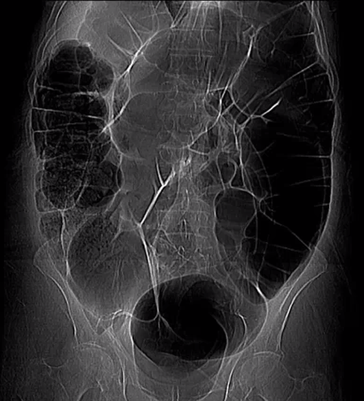 digital subtraction angiogram - x-rays of dye in vessels during interventional procedure e.g. stenting