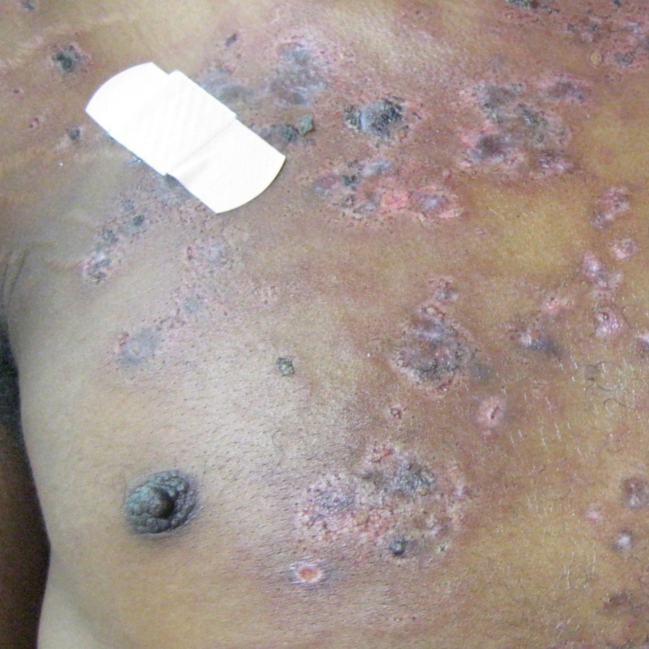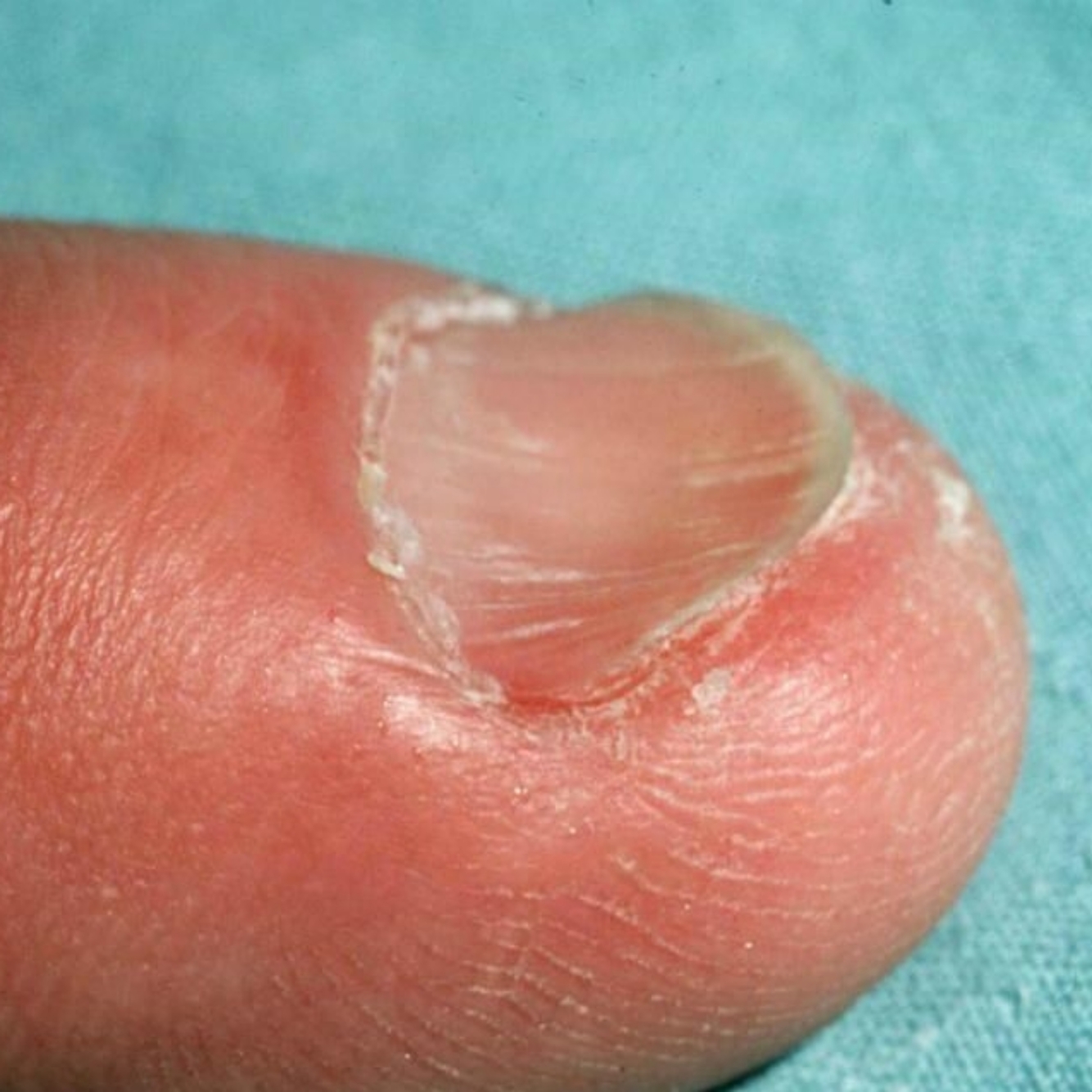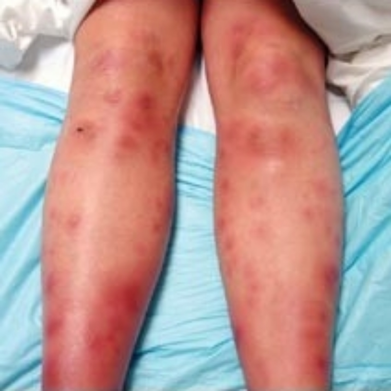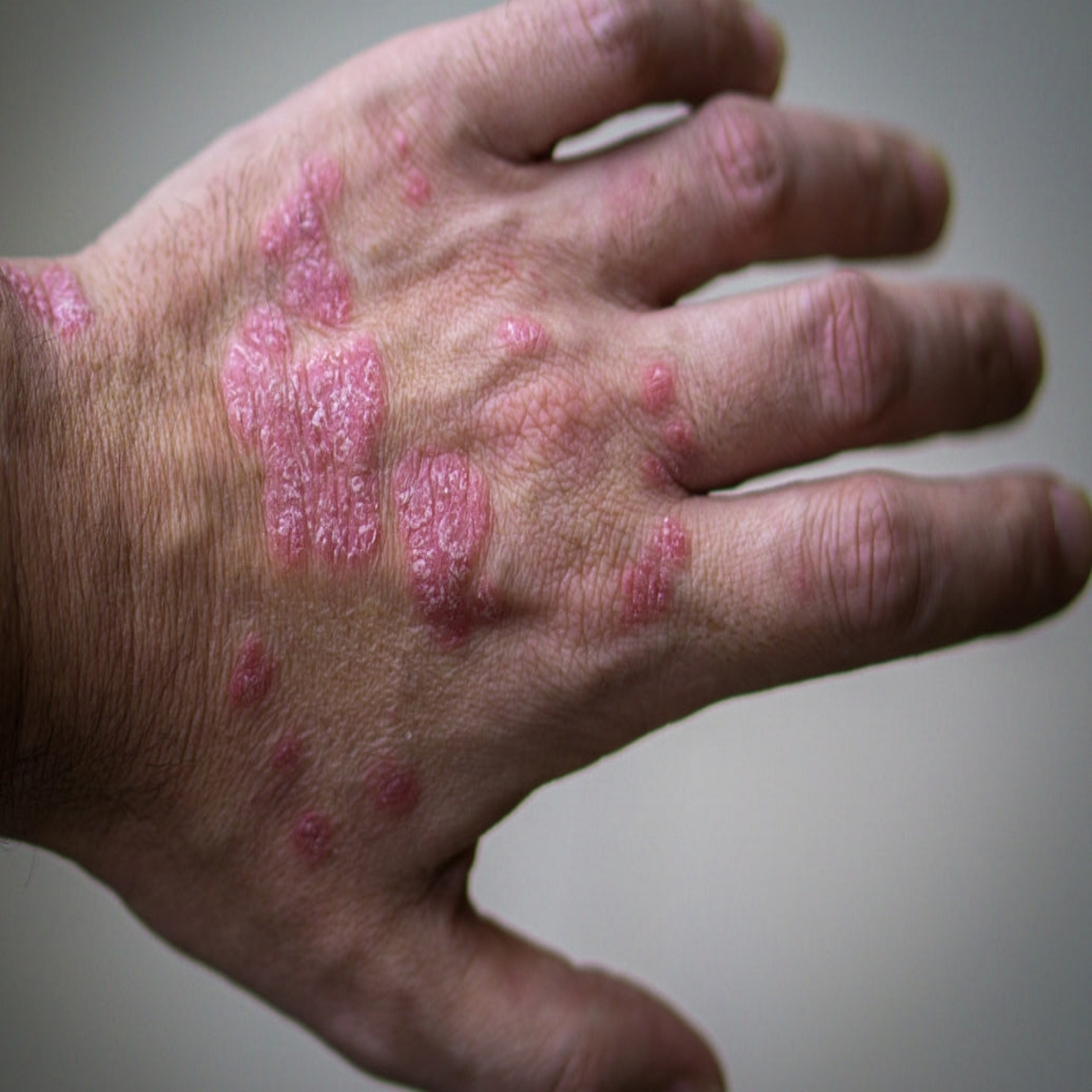 (More classically on extensor surfaces eg elbow, but I have used a picture of the hand so as not to give it away so obviously)