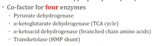 Thiamine is a co-factor for what 4 enzymes?