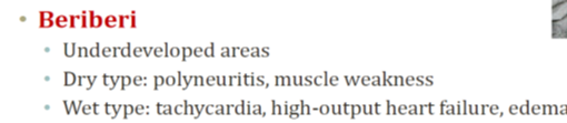 What are the types, causes and symptoms of beriberi thymine def?