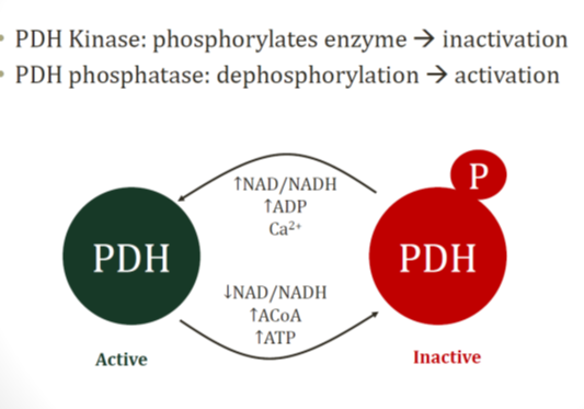 What enzymes regulate PDH by phosphorlation? which one is active?