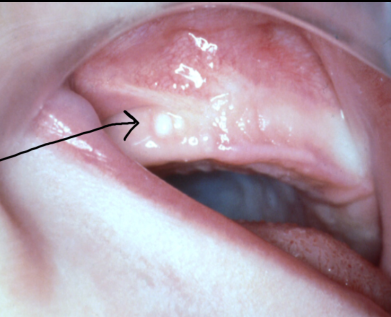 The white mark is a gingival cyst.