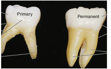Compare primary and permanent molars