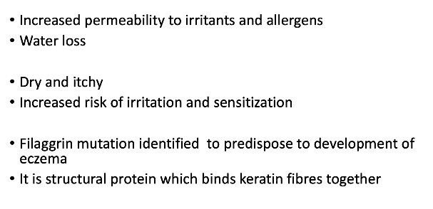 atopic ezcema is considered to be a barirer defect - what does does that mena and what does that result in?