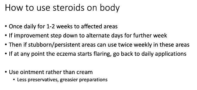 what type of unit for steriods do we use to guide treatment of ezcema?