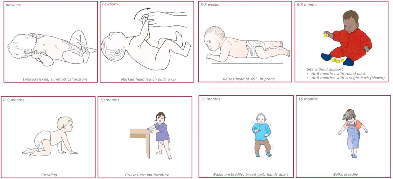 What is the normal development milestones of a 18 months old?