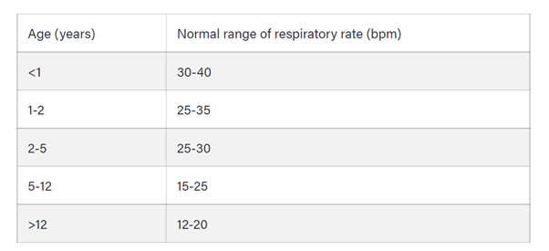 Management of paediatric emergencies is A-E approach as it is with adults; gauge the normal RR for children of different ages
