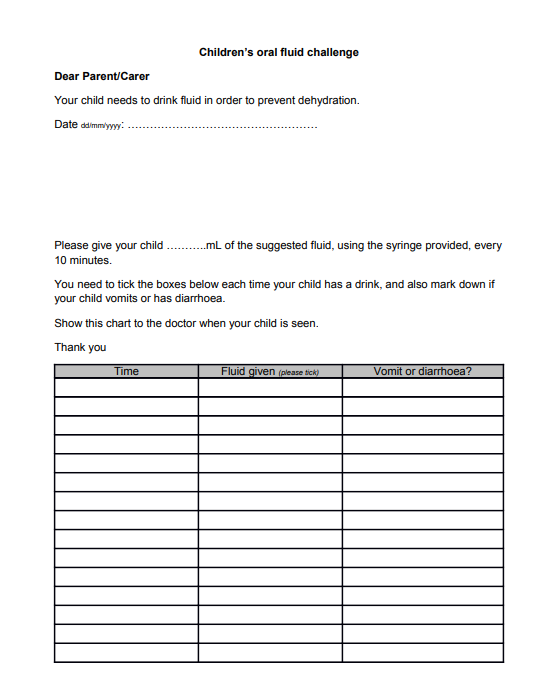 If a child comes into A&E and there are minor concerns about hydration/fluid intake, what can you do?