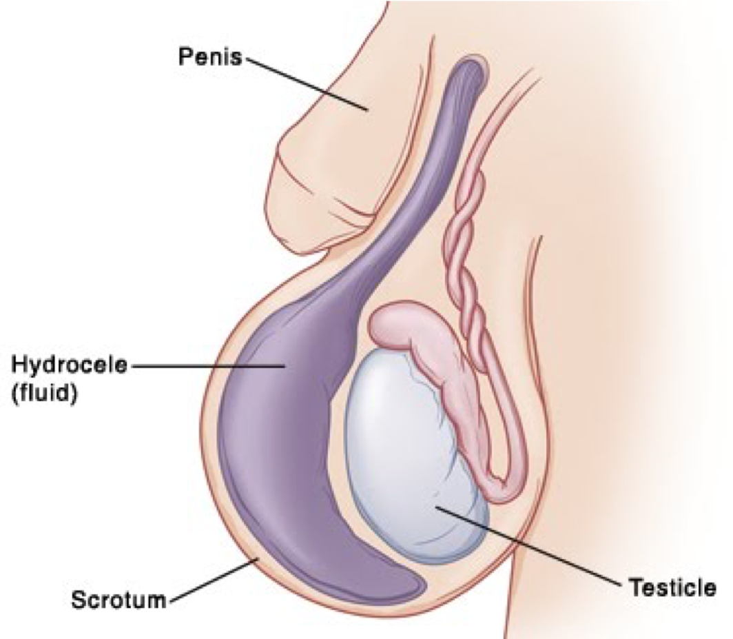 mum noticed lump in left SCROTAL swelling at bath time. bluish colour