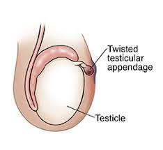 Torsion of the appendix testis is a twisting of a vestigial appendage that is located along the testicle. This appendage has no function, yet more than half of all boys are born with one. Although this condition poses no threat to health, it can be painful. Usually no treatment other than to manage pain is needed