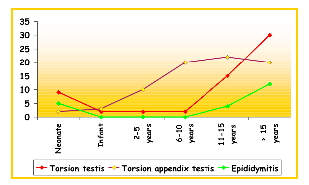 age related ….. Ish (older you are more likely a torsion but not absolute - More torsion as you get older and go through puberty as you get a bigger mass of testes so more likely to twist)