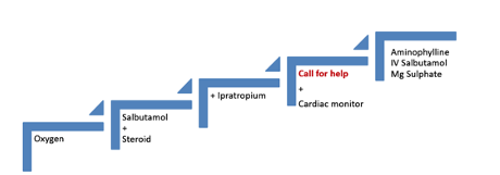 Exam: Tachypnea, coarse crackles, reduced 02 sats, nasal flaring, recessions.