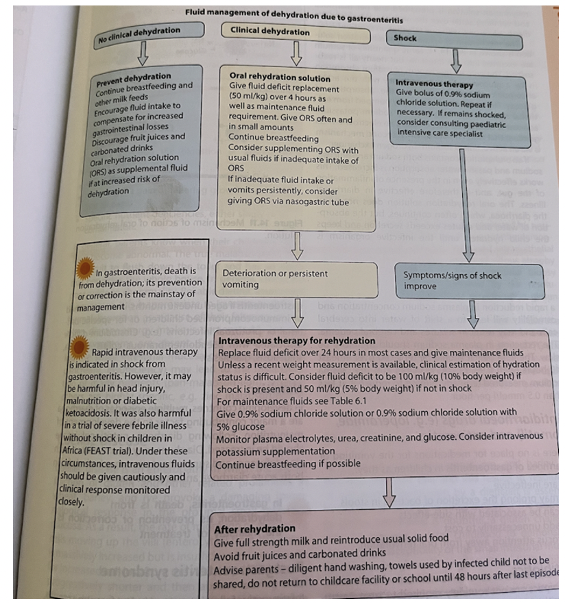 Management: Rehydration with correction of fluid and electrolyte imbalance.