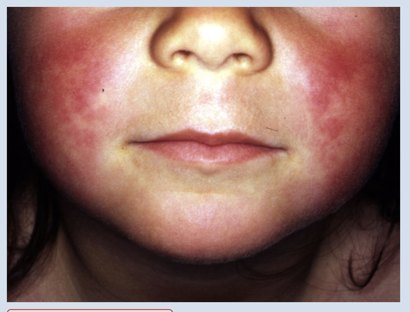 The first child has measles. This tends to present with prodomal symptoms of fever, cough, runny nose, mild conjunctivitis and diarrhoea. There is often a rash initially on the face and neck which then spreads to the trunk and limbs over 3–4 days. Koplik’s spots are pathognomonic and appear on the buccal mucosa. They occur in 60–70% of patients and usually lasts for up to 2–3 days after the rash disappears. Measles is a notifiable disease.