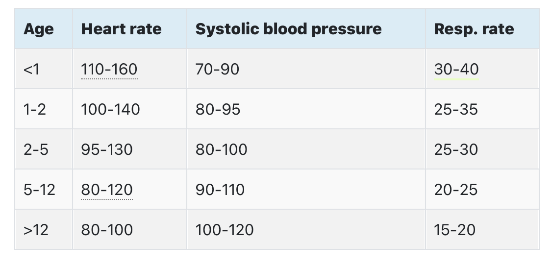 Normal examination parameters for a child?