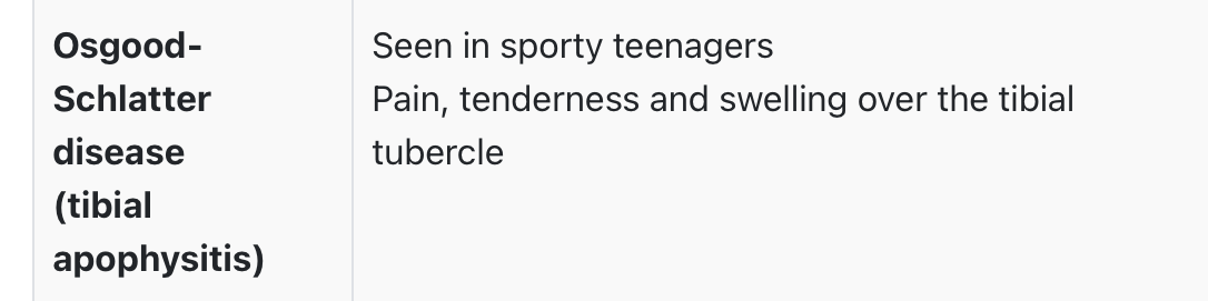 Presentation of Osgood-Schattler disease?