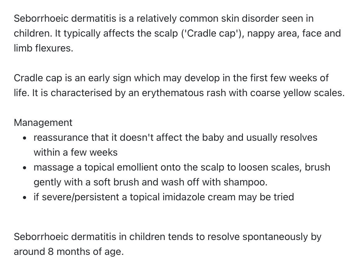 Management of Seborrhoeic Dermatitis/Cradle Cap?