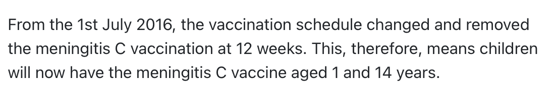 When is Men C vaccine given?