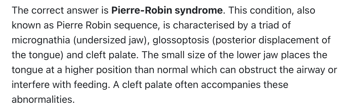 Presentation of Pierre-Robin syndrome?