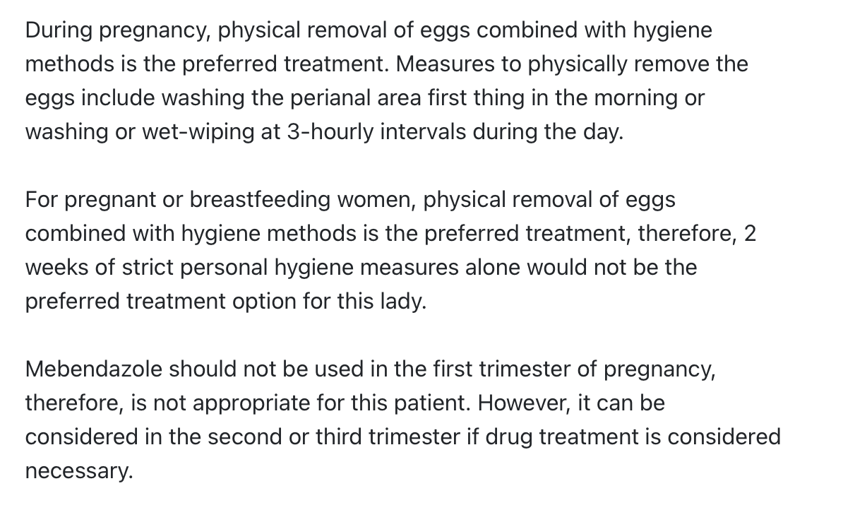 Management of threadworm in pregnancy?
