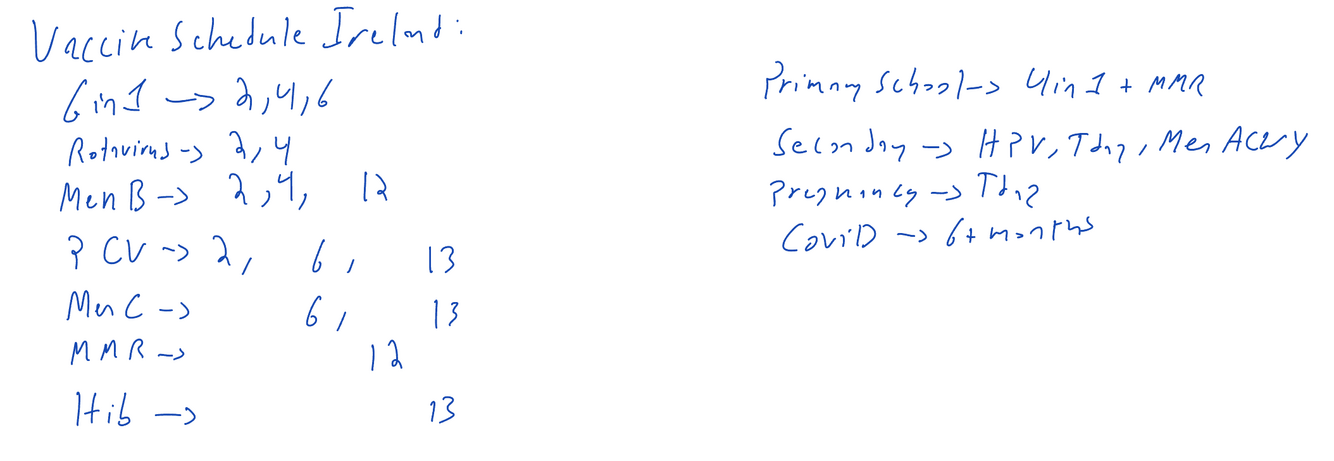 Go over the vaccine schedule in ireland