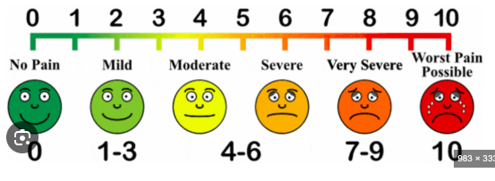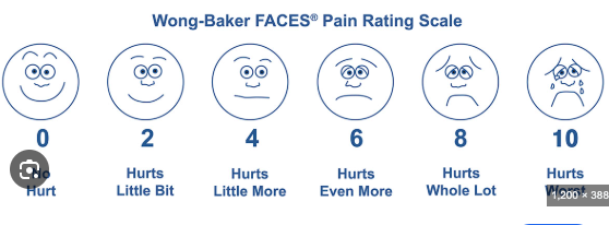 10cm line with no pain on one end and worst pain imaginable on the other. Child marks where there pain is