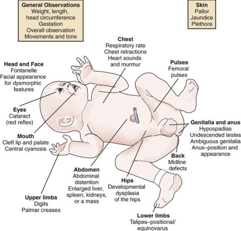 Multisystem examination done in first 24 hours of life then repeated at about 6-8 weeks. Also an opporutunity for parental reassurance and health education: