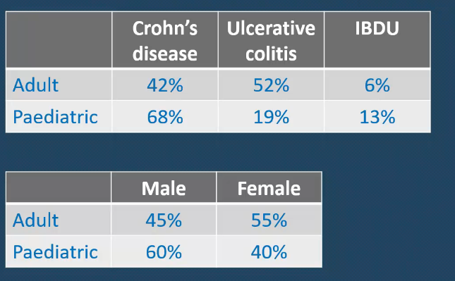 Describe how the epidemiology of inflammatory bowel disease differs between children and adults?